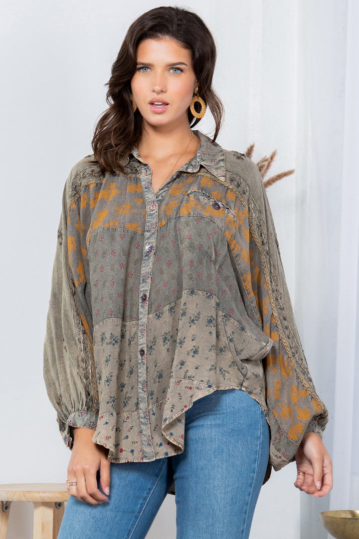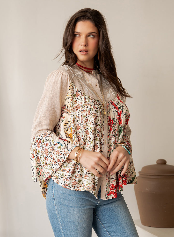 Dust & Dandelion Patchwork Bishop Sleeve Blouse