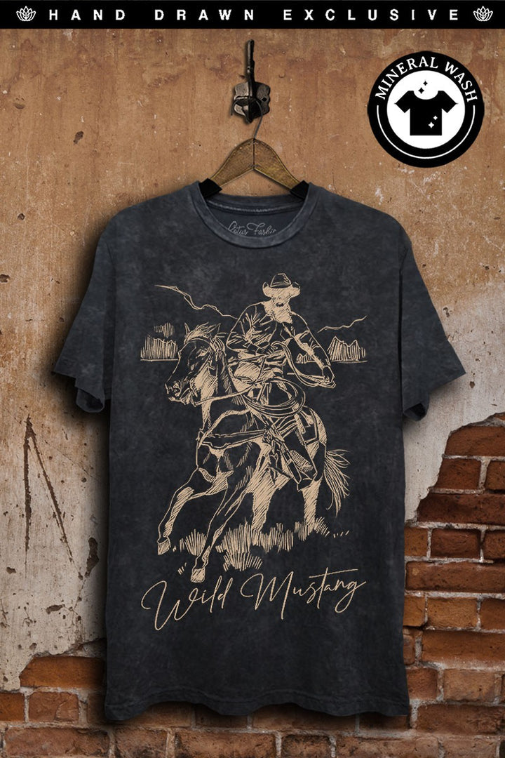 Wild at Heart Mineral Washed Black Wild Mustang Graphic Tee